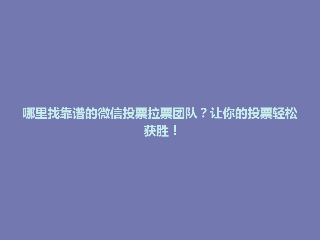 临颍县哪里找靠谱的微信投票拉票团队?让你的投票轻松获胜!